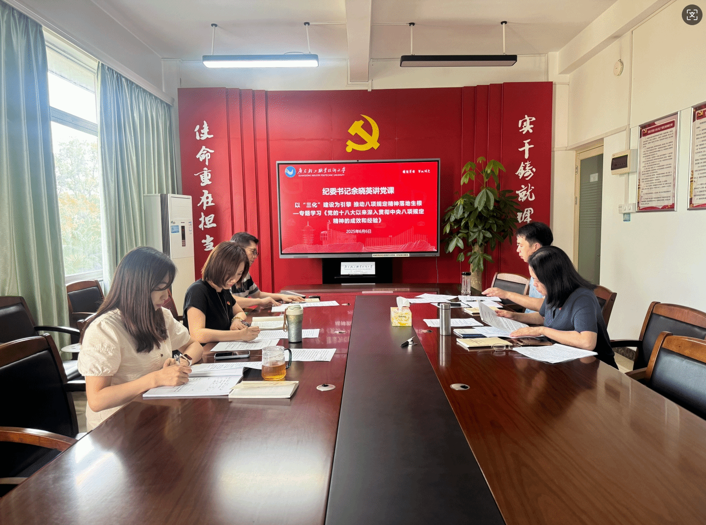 为深入学习贯彻习近平总书记关于加强党的作风建设的重要论述,推进深入贯彻中央八项规定精神学习教育走深走实,6月6日,学校党委副书记、纪委书记余晓英为纪检党支部党员讲授主题为“以‘三化’建设为引擎 推动中央八项规定精神落地生根”的党课。