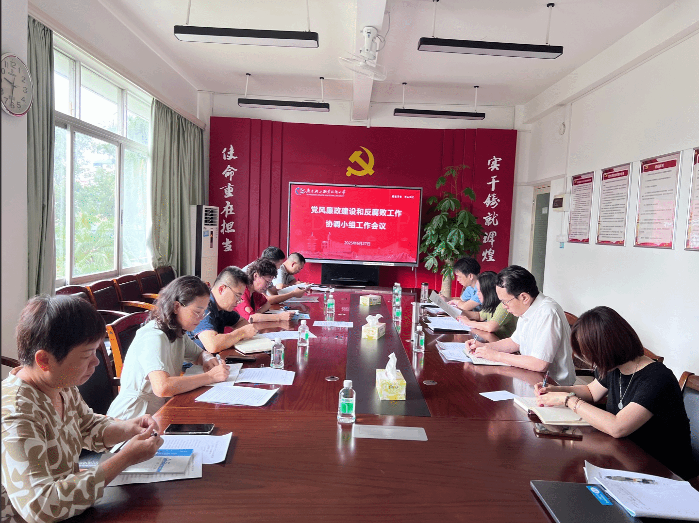 6月27日,学校召开2025年第一次党风廉政建设和反腐败工作协调小组会议。学校党委副书记、纪委书记、协调小组组长余晓英主持会议并讲话,协调小组全体成员、纪检室相关同志参加了会议。